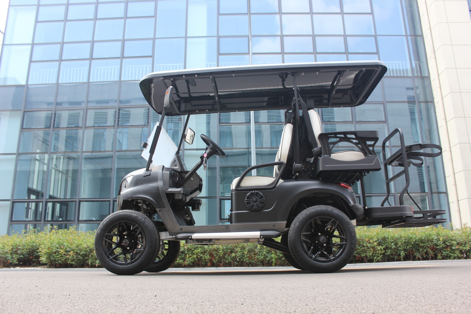 Fairway 4 seater golf cart in Silver. The motor electronically controlled battery is guaranteed for three years.