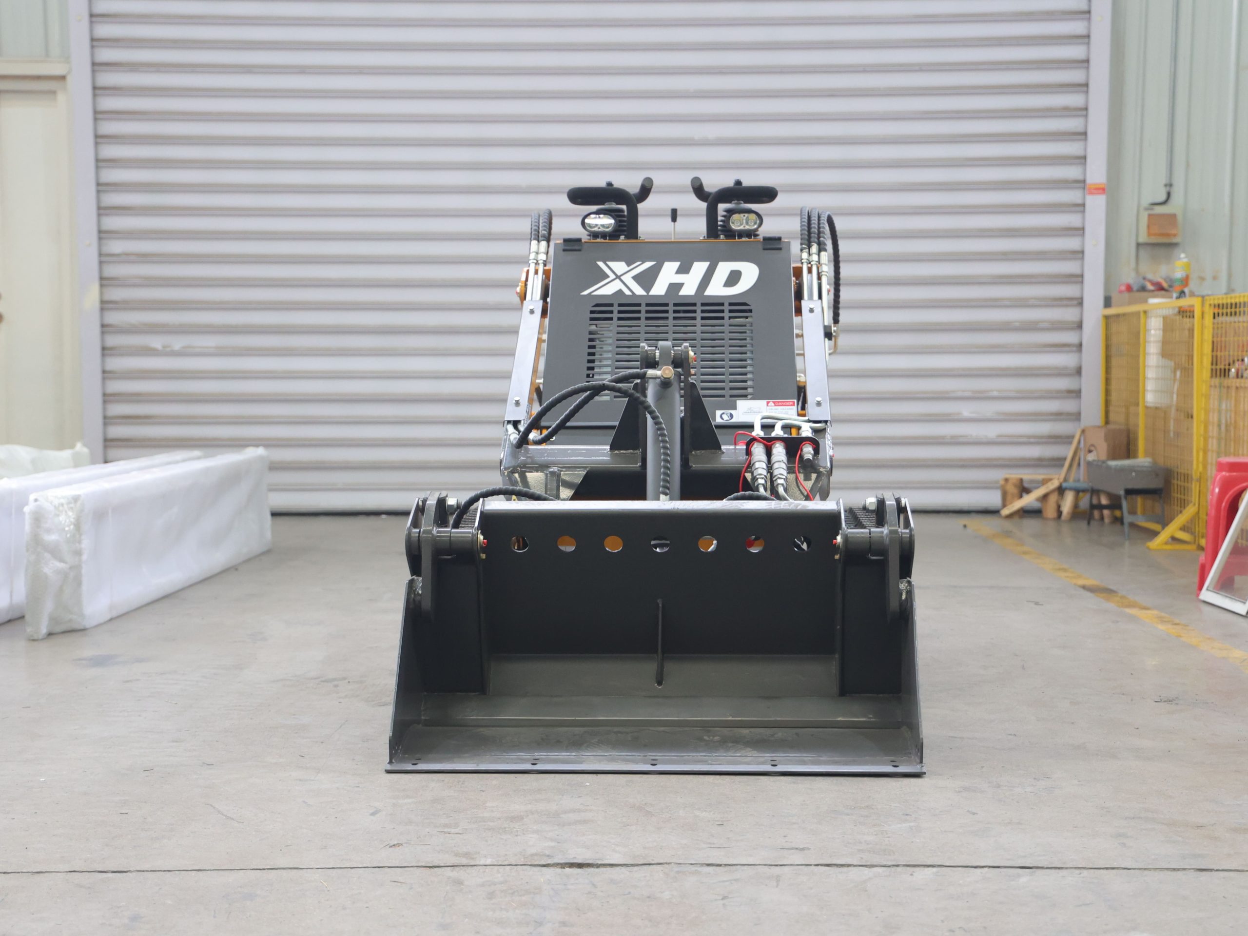 The skid steer loader is also called a multi-purpose engineering vehicle. It is a wheeled special chassis equipment that uses the difference in the linear velocity of the wheels on both sides to realize the steering of the vehicle. It has the characteristics of flexible steering, and compact body and can be equipped with multi-function tools. allowing more versatility to work in smaller working spaces, in particular, fitting through gates, doorways etc. It will greatly improve your working efficiency. It’s a great machine for landscapers, builders, electricians, contractors etc.